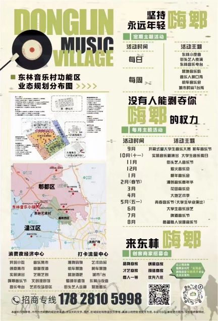 成都东林音乐村,以“音乐艺术”为主题,构建丰富多元场景,聚集文娱文创、美食休闲、艺展艺训、夜间经济等业态,持续打造大地艺术季及音乐节、音乐会、音乐电台、音乐综艺、实景音乐剧、街头艺人演出等常态化运营文化IP。