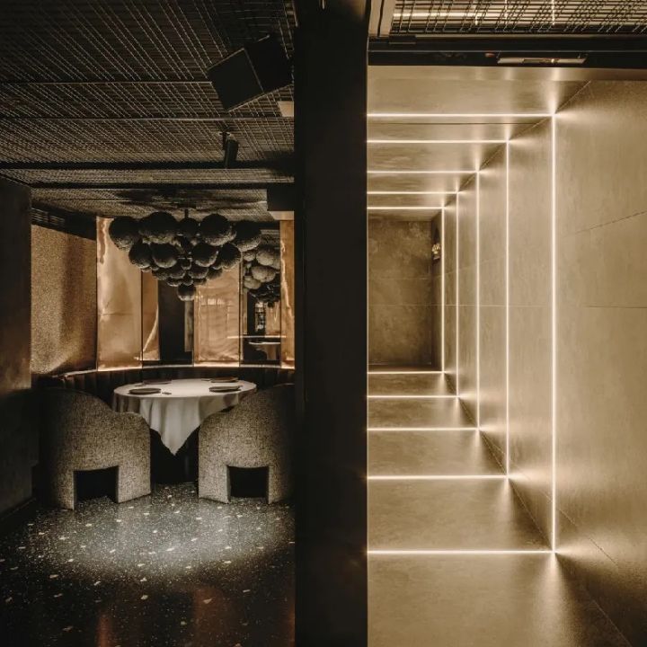 自信色彩拥抱叛逆极简趋势。这一方向的应用范围广泛,从涂料和瓷砖到墙纸和石灰水或泰德拉克饰面。利用背光墙面和天花板的照明技术增强了整体色彩的冲击力,不妨参考Masquespacio在米兰设计的Ichi Station以及Ramoprimo为北京théATRE茶饮店打造的室内设计。